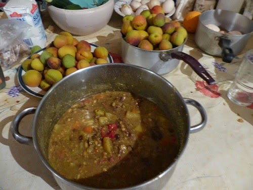 and eleven pots of apricot jam from the fruit